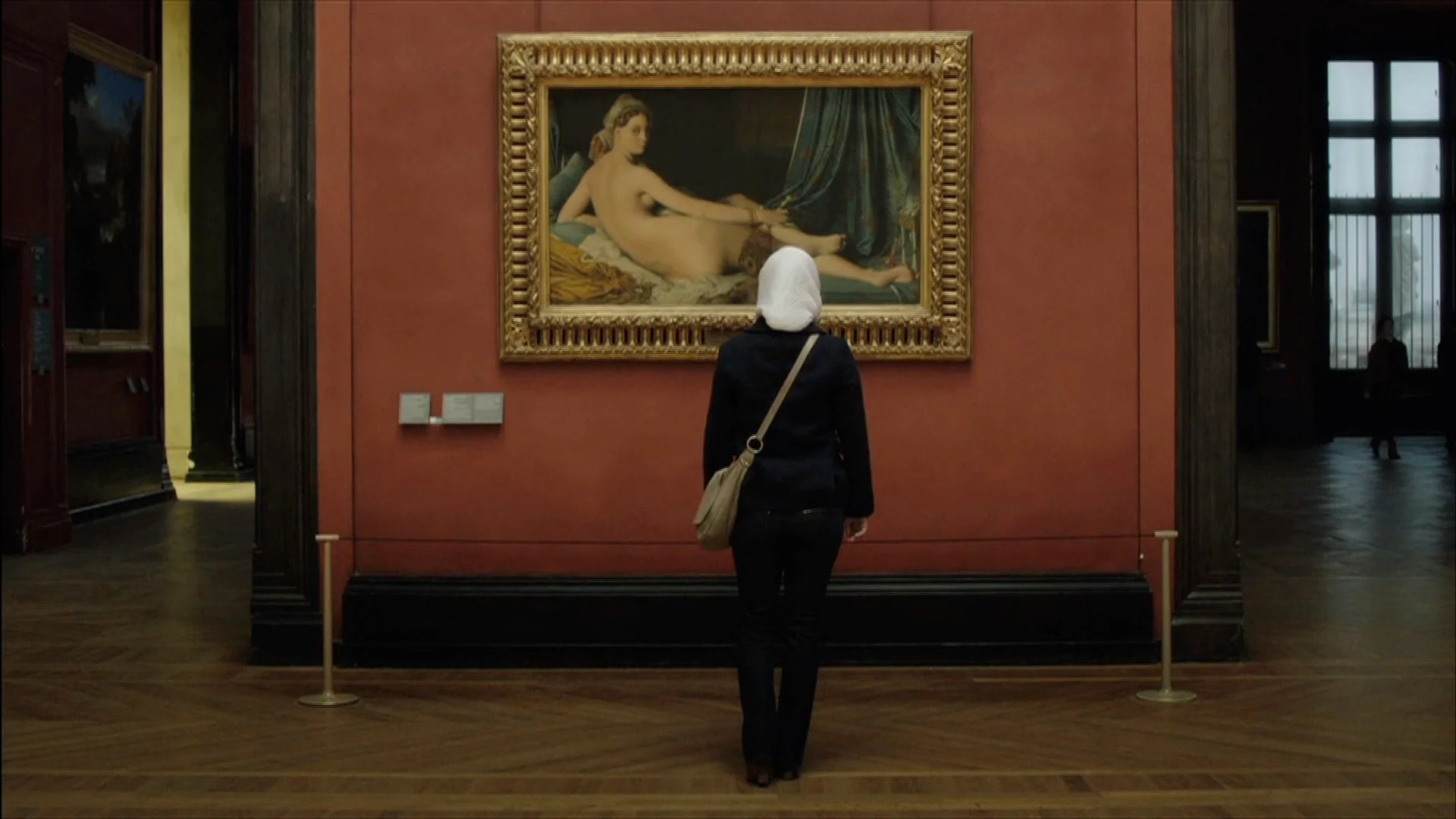 Hafsia, étudiante en histoire de l’art, va devoir enlever son hijab pour passer un oral. Elle se rend au Musée du Louvre pour observer l’œuvre qu’elle va devoir commenter.